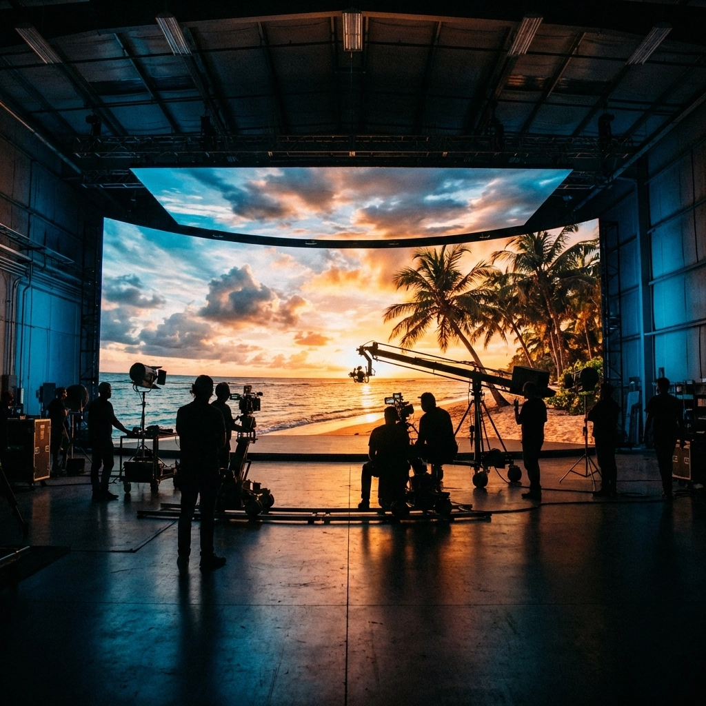 Think of it like this: you're shooting a scene set on a beach in Bali, but you're actually standing in a warehouse in New Jersey. The LED wall behind your actors shows the beach, complete with moving waves, shifting sunlight, and swaying palm trees. The camera captures it all in-camera, meaning what you see on set is pretty much what ends up in the final product.